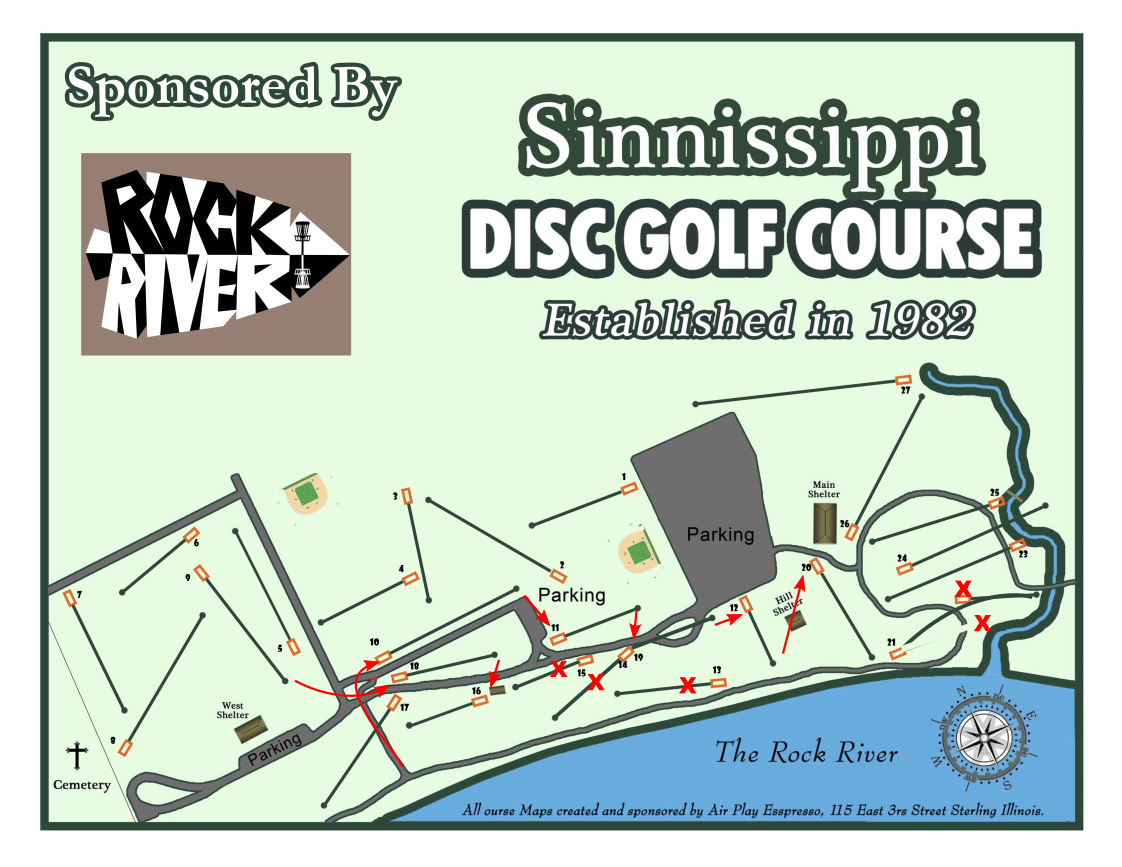 Sinnissippi Park has a creative and challenging layout overlooking Lake Sinnissippi from the bluffs above the Rock River. The course is well manicured, with elevation and water hazards. Couple the plethora of challenging pin placements with some unique temporary holes, and you are looking at 2 rounds of 23 holes to challenge your game. Split day event. Field is limited to 92 players/day (no 5-somes).